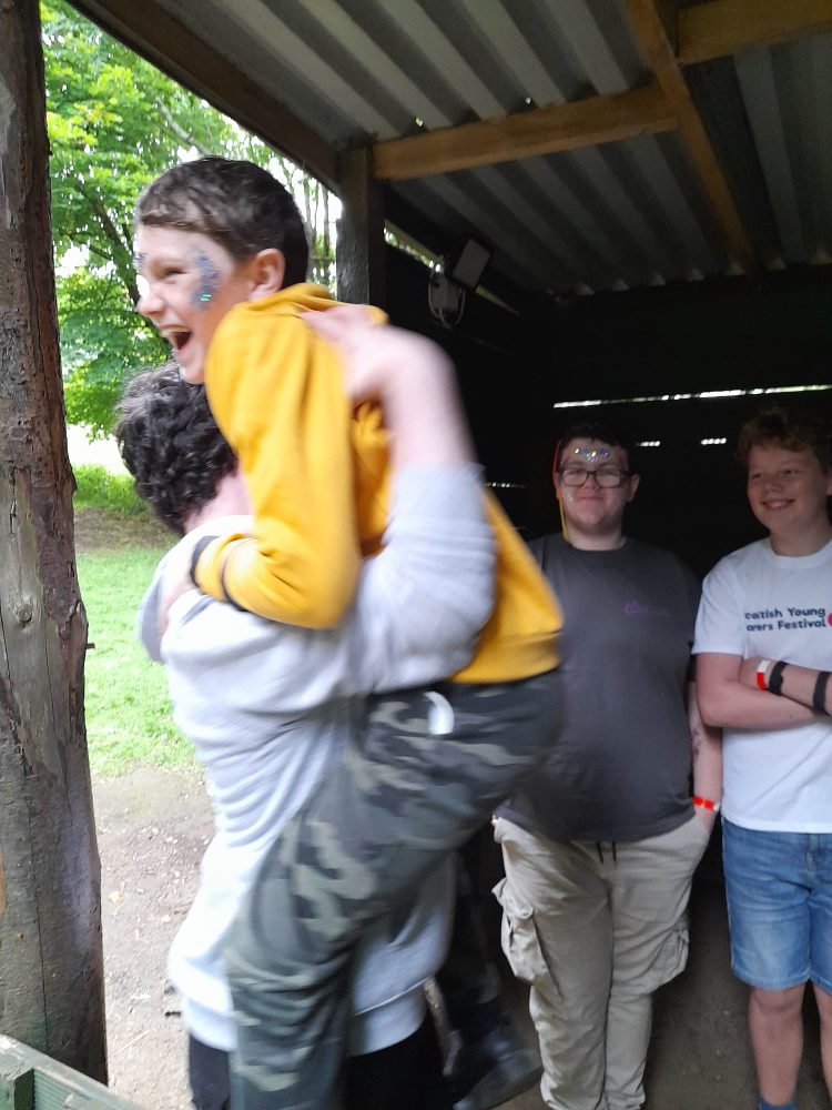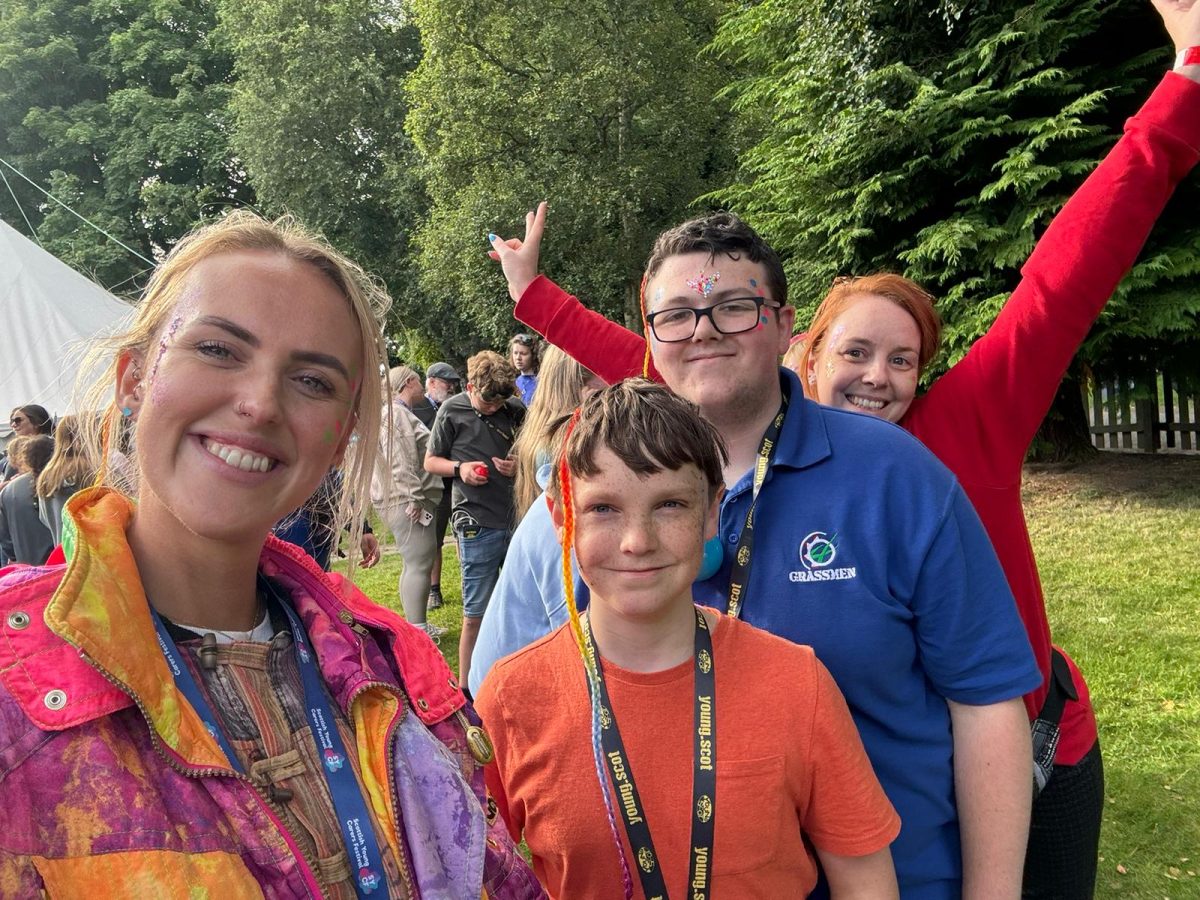 9 Young Carers went along to the Scottish Young Carers Festival with staff members Emma and Jordan. This was a fantastic opportunity to take part in a wide range of activities and experiences. 500 Young Carers from across Scotland were together over the 3 days and despite the rain a great time was had by all! There were inflatables, zip lines, a silent disco, crafts, drumming workshops, cool creatures and so much glitter!